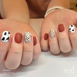 - Colour – Apply 1–2 thin coats of lac it! Gel Polish, curing 60s LED / 2 min UV between each.
